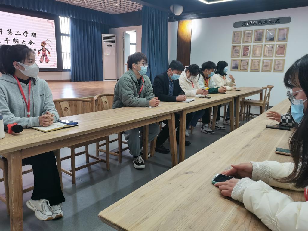 为进一步规范信阳优秀传统文化传承协会工作,部署新学期工作。2月26日,传承协会在传承馆召开2021-2022学年第二学期全体学生干部大会。马克思主义学院党总支副书记、传承馆负责人陈金强出席了会议,全体学生干部参加会议。会议由办公室主任王晓青主持。