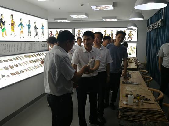 6月16日,平桥区平西街道办事处卢睿书记一行到传承馆参观指导。传承馆负责同志接待来客人。