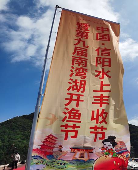2021年9月29日,“中国·信阳水上丰收节暨第九届南湾湖开渔节”在信阳南湾湖景区盛大开幕,活动由信阳市南湾湖风景区管委会、信阳市文化广电和旅游局主办,信阳市南湾湖风景区旅游发展有限公司、信阳市南湾水库渔业开发有限公司、河南大象融媒体技术有限公司以及河南省文化和旅游厅创意工作室承办。信阳学院地方民俗文化研究中心陈金强、何左老师应邀参加有关活动。