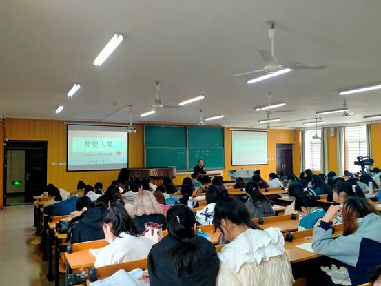 11月6日,信阳古琴师、古琴协会名誉会长赵主明老师应邀到我校为信阳地方传统音乐与戏剧鉴赏公选课学生授课。信阳市文广旅局非遗科科长王清丰、地方民俗文化研究中心及音乐学院部分师生参加了活动。