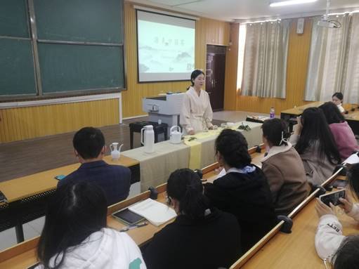 11月27日上午,为进一步丰富学校学生课余文化生活,弘扬中华传统文化内涵,信阳茶艺师、静林源茶叶主理人杨静老师在信阳学院艺术楼101为同学们讲授了“茶艺厚底蕴 茶香润人生”优秀传统美术与技艺制作课程内容。信阳市文广旅局非遗科王清丰科长、传承馆负责人陈金强老师旁听了课程。