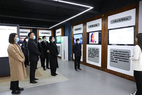 讲解员王晓青带领专家组参观皮影、歌舞、戏曲、剪纸、烙画、叶雕、毛尖传习等展示区和传习区,并向客人介绍了我校关于弘扬中华优秀传统文化开展的公共选修课、专项优秀传统文化科研项目、社团建设等方面工作开展情况。专家组充分肯定了我校在弘扬中华优秀传统文化方面所做的工作,对皮影表演与制作、民歌演唱、汪家拳、剪纸、烙画、叶雕传习及美术与设计专业学生文创产品等一系列传承成果给予了高度评价。