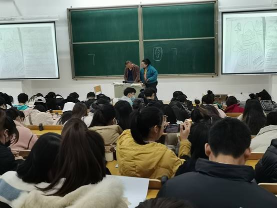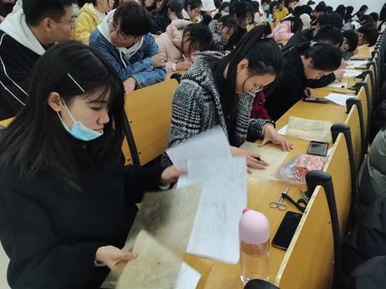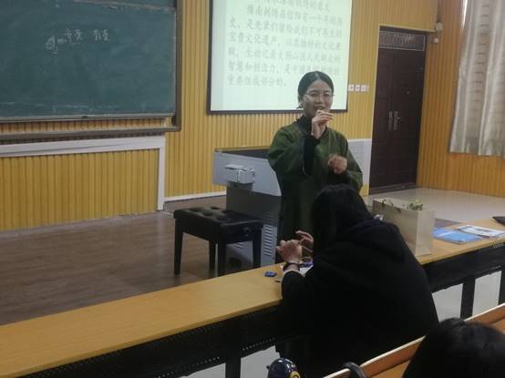 为继承和弘扬中华优秀传统文化,提升大学生文化素养,积极推进优秀传统文化校园传承活动。12月4日,信阳市艺术中心国家一级戏曲演员何雪林、罗山皮影代表性传承人陈雨伦、祁平、豫南刺绣传承人邓晶晶老师应地方民俗文化研究中心邀请在艺术楼101教室、综合楼202教室为《信阳优秀传统音乐与戏剧鉴赏》《信阳皮影表演与制作工艺》《信阳优秀传统美术与技艺制作》三门地方优秀传统文化课程近500名学生开展了豫南刺绣、地方戏曲鉴赏、罗山皮影制作课堂传习活动。