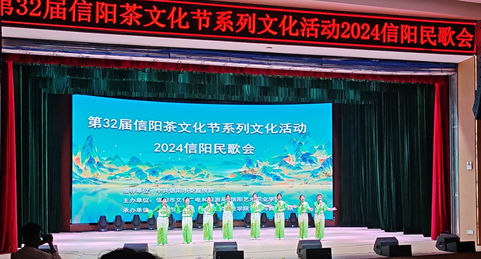 近期,信阳市第32届信阳茶文化节系列文化活动——“信阳民歌会”赛事活动如火如荼。我校音乐学院共选送了4个作品参加比赛,经过激烈角逐,在全市各县区、市直单位和高校的39支代表队报送的43个作品中脱颖而出,斩获多项佳绩。其中,孙怡文老师的《对花》斩获一等奖,董康坦老师的《请到信阳来》获二等奖,朱永昌老师的《来到了大别山》、女生小合唱《茶歌唱出情满怀》获三等奖,我校获优秀组织奖。