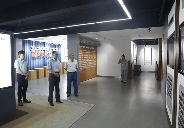 在讲解员咸雅琪的引导下,客人先后参观了影像展示区、信阳民歌、罗山皮影戏、花鼓戏、毛尖炒制技艺、剪纸、烙画、叶雕、文创产区等展示与传习区域。传承馆负责人详细介绍了我校传承馆集的收藏、展示、教学研究、文化传承等工作开展情况。客人对我校弘扬中华优秀传统文化工作给予了高度评价,认为我校在文化传承方面所做的努力值得肯定和推广,并与传承馆负责人就下一步深入挖掘、文化传承、教学研究等工作进行了交流。