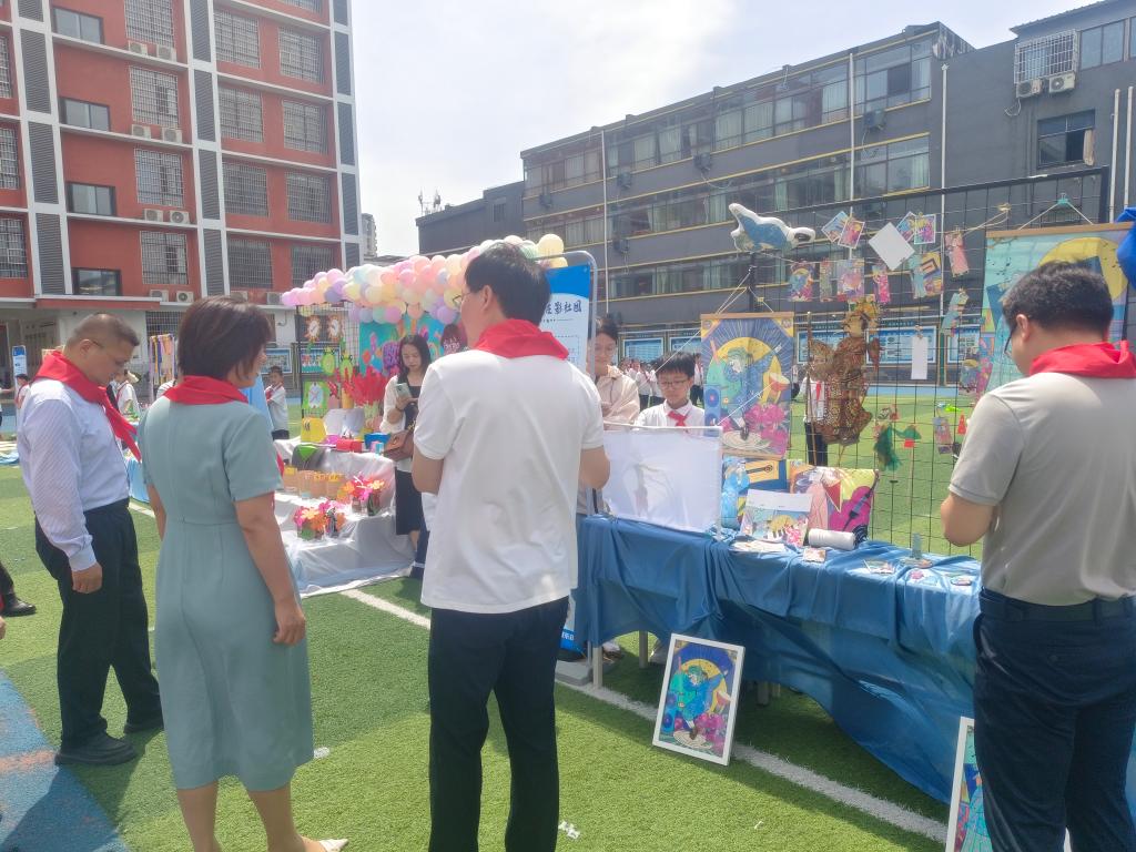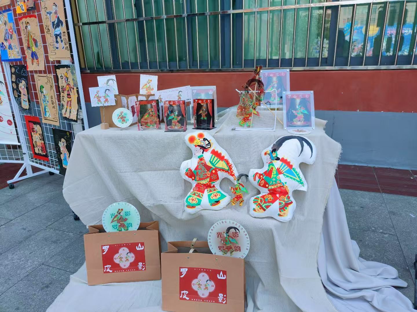 (图为指导信阳市第三实验小学学生布置的皮影文创展示区)